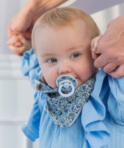 BIBS x LIBERTY je exkluzívna kolekcia najobľúbenejších BIBS produktov s potlačou Liberty. Liberty inšpiruje svet svojou výstrednosťou, nadčasovou eleganciou a prepožičiava svoje originálne vzory luxusným módnym značkám už od roku 1875. V kolekcii BIBS x LIBERTY sme spojili svoje sily, aby sme Vám priniesli produkty, ktoré oslavujú dedičstvo oboch značiek. Obľúbené BIBS Colour cumlíky teraz aj v ortodontických verziách – symetrický tvar alebo anatomický tvar. BIBS dobývajú celý svet. Jednoduché a štýlové. Sacia časť je vyrobená zo 100%25 prírodného kaučuku, ktorý je mimoriadne pružný a mäkký zároveň, odolný voči vytvoreniu trhlín a odštiepeniu malých kúskov. Cumlík je navrhnutý tak, aby nedráždil citlivú pokožku bábätka. Okrúhly krúžok s vetracími otvormi má klenutý tvar, takmer vôbec sa nedotýka pokožky okolo úst, tá preto zostáva kľudná, bez otlačkov a podráždení. Vďaka mäkučkému kaučuku a zabudovanému vzduchovému ventilu dieťa cumlík ľahko stláča a formuje v ústach, čím je zachovaný prirodzený vývin podnebia, ďasien a zúbkov detí. Prečo deti aj rodičia obľubujú cumlíky BIBS Colour? Extra ľahučký. Vďaka špeciálnemu klenutému tvaru krúžku je minimalizovaný dotyk cumlíka s pokožkou a nevznikajú otlačky a podráždenia. Dieťa saje len 100%25 prírodný bezpečný materiál – kaučuk vyrobený z miazgy stromu Hevea. Výnimočná chuť prírodného kaučuku, deti ho prirodzene uprednostňujú pred syntetickými materiálmi. Štýlový dizajn v mnohých farebných prevedeniach. Vyrobené v EU. Zloženie: Sacia časť: 100%25 prírodný kaučuk Ostatné časti: polypropylén (PP) potravinárskej kvality. Bez BPA, PVC, ftalátov a iných škodlivých látok. Vyrobené v Dánsku. V súlade s európskym štandardom EN 1400+A2. Veľkosti: BIBS x LIBERTY Colour symetrické cumlíky sú k dispozícii v 2 veľkostiach: Veľkosť 1: 0-6 mesiacov. Veľkosť 2: 6-18 mesiacov. Vekové odporúčanie veľkostí je len orientačné, každé dieťa môže mať iné potreby a preferencie.