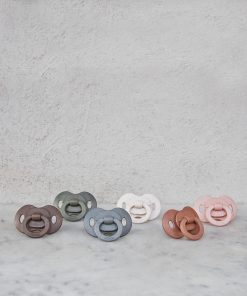 Tlmené farebné odtiene a gombíkový krúžok im dodávajú retro inšpirovaný vzhľad, ktorý si ľahko zamilujete. Všetky cumlíky môžu mať k sebe ladiace klip na cumlík, perfektný pre kompletný vzhľad a udržanie cumlíka v dosahu.