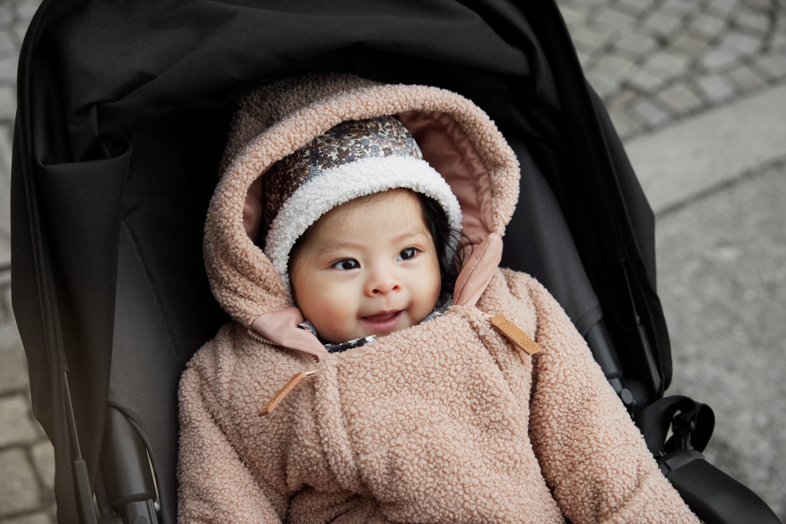 Perfektné pre hranie, chodenie alebo krátky spánok vonku v chladnejších dňoch. Zaoblený tvar a zaväzovanie pod bradou prispievajú k udržaniu vášho dieťaťa v teple, spokojnosti a pohodlie.