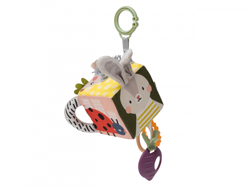 Hračka na použitie na postieľke, kočíku, autosedačke a pod. Množstvo rôznych aktivít, prekvapivé textúry a obrázky pre zábavné hranie a skúmanie. Plastový krúžok pre ľahké uchytenie, zvuk zvončeka, textilné držadlá, plastové krúžky, hryzátko, bezpečné zrkadlo, hrkálka.