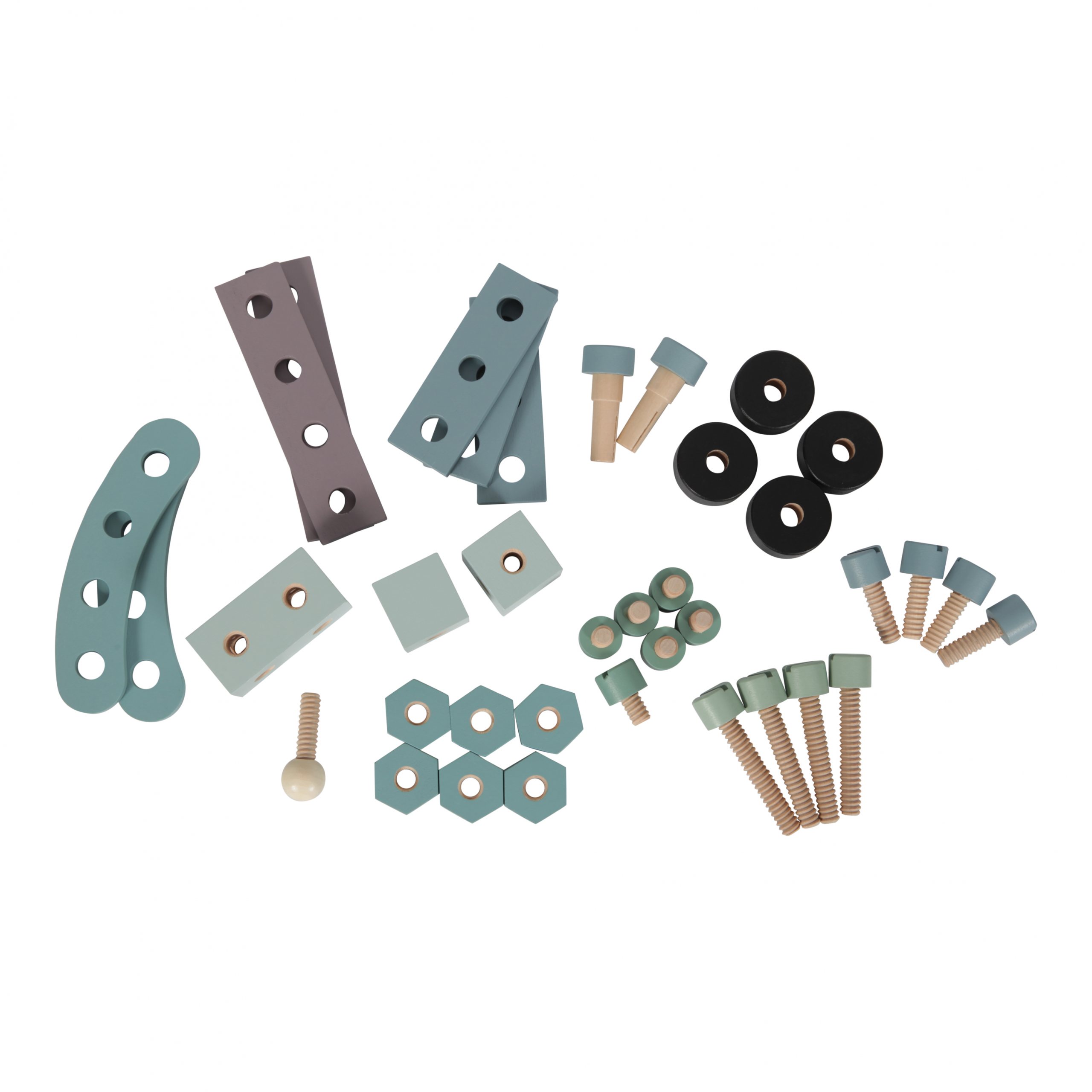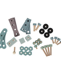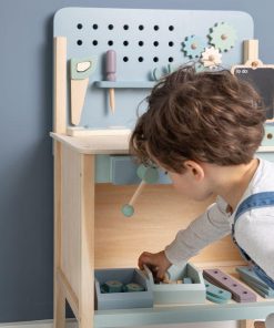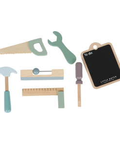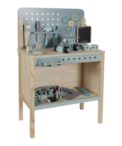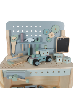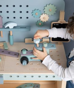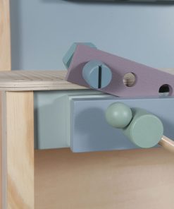 Tento robustný drevený pracovný stôl od Little Dutch je dodávaný s drevenými nástrojmi a množstvom vecí. Kompletná sada sa skladá zo 48 častí, vrátane detského kladiva, kľúča, skrutkovača, matíc a skrutiek. S praktickým a nastaviteľným opaskom na náradie budete mať všetko vaše náradie vždy poruke.