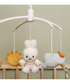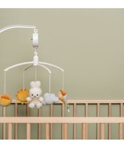 Kolotoč s naťahovacím hudobným boxom hrá nežnú uspávanku Somewhere Over The Rainbow pre pokojné zaspávanie. Pozornosť dieťaťa upútajú otáčajúce sa plyšové hračky v podobe zajačika Miffy, slniečka, mráčika, šarkana a lopty v pastelových farbách. Kolotoč ľahko pripevníte na bočnicu postieľky.