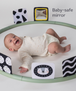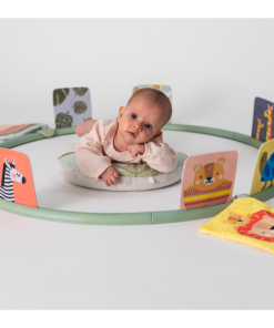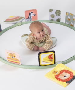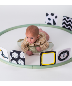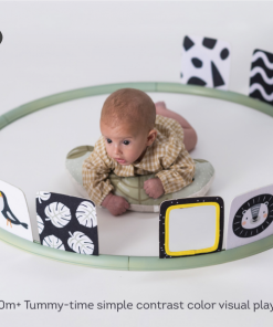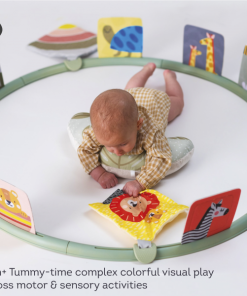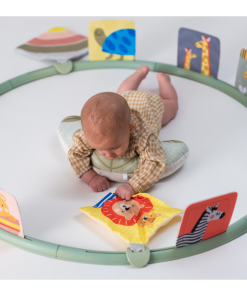 Unikátny hrací kruh ponúka 16 rôznych aktivít podporujúcich hranie dieťaťa na brušku. Kruh sa skladá z niekoľkých dielov, ktoré rýchlo a jednoducho spojíte dohromady. Do otvorov v kruhu môžete pripevniť ľubovoľné kombinácie aktivít a pripraviť tak dieťaťu vždy nové prostredie na skúmanie a hranie. Vankúšik z mäkkého, príjemného materiálu je špeciálne navrhnutý, aby podporoval hranie dieťaťa na brušku. Poloha na brušku je dôležitá pre posilňovanie krčných a chrbtových svalov, ktoré neskôr umožňujú dieťaťu začať sa pretáčať, liezť a sedieť bez opory.