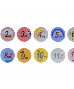 6 obojstranných kartičiek s označením veku 1m – 12m vám umožní vytvorenie série fotografií s označením veku v mesiacoch po dobu prvého roku života vášho dieťaťa