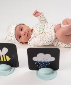 Unikátna sada obrázkov s dvoma stojanmi zabaví vaše dieťa a zároveň pomáha rozvíjať jeho zrak a jemnú motoriku od narodenia. Vďaka stojančekom obrázky môžete postaviť pred dieťa v polohe na brušku. Množstvo obrázkov, ktoré sada ponúka, umožňuje rodičom obrázky vymieňať a udržiavať tak dlhšie pozornosť dieťaťa.