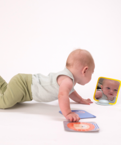 od 3 mesiacov: veselé farebné obrázky a bezpečné zrkadlo