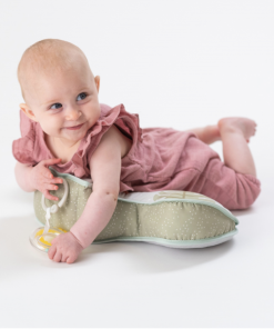 Vankúšik z mäkkého, príjemného materiálu je špeciálne navrhnutý, aby podporoval hranie dieťaťa na brušku. Vankúšik s hryzátkom a hrkálkou podnecuje dieťa k zdvíhaniu hlavičky a krku.