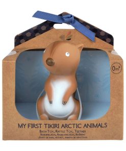 Roztomilé Tikiri zvieratká sú vyrobené z príjemne jemnej mäkkej prírodnej gumy z kaučukového stromu Hevea. Zvieratká nemajú žiadny otvor, ktorým by sa do vnútra mohla dostať vlhkosť, takže sú ideálne ako hračka do kúpeľa alebo hryzátko pri prerezávajúcich sa zúbkoch. Deti obľubujú špecifickú príjemnú vôňu a chuť prírodnej gumy a zaujme ich aj zvuk jemne znejúcej hrkálky vnútri zvieratka. Tikiri sú prvé kaučukové hračky certifikované GOLS (Global Organic Latex Standard). Prírodný BIO kaučuk vyrobený z miazgy kaučukového stromu Hevea, ktorá je pravidelne šetrne a udržateľne odoberaná tak, aby strom netrpel. Ekologický, v prírode rozložiteľný materiál, bezpečný aj pre tie najmenšie bábätká. Ručne maľované netoxickými rastlinnými farbami. Neobsahuje BPA, PVC, ftaláty ani žiadne iné škodlivé látky. Vhodné od narodenia. Vďaka ručnej práci je každé zvieratko jedinečné a prípadné drobné nerovnosti materiálu a odlišnosti v kresbe sú prirodzenou vlastnosťou. Údržba: Povrch umyte vodou a jemným saponátom a nechajte vyschnúť. Neskladujte vo vlhkom prostredí ani na priamom slnečnom žiarení. Nesterilizujte. Všetky Tikiri produkty sú vyrobené s ohľadom na životné prostredie. Vieme, že rešpektovať životné prostredie znamená rešpektovať celú našu planétu, ktorú tak chránime pre ďalšie generácie.